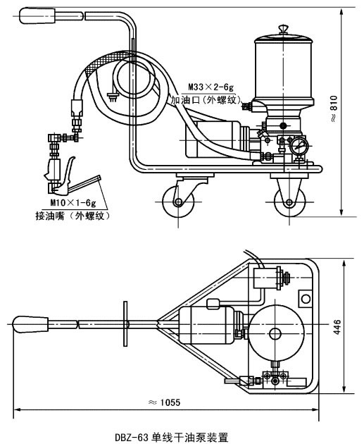 一、概述 DB-63 型單線干油泵適用于潤滑頻率較低、公稱壓力為10MPa、潤滑點在80 點以下的單線小型干油集中潤滑系統(tǒng)中,通過片式給油器向各潤滑點供送潤滑脂。 DBZ-63型單線干油泵適用于潤滑周期較長或者設(shè)備較分散的潤滑點,通過注油槍直接加注潤滑脂,特別適用于港口碼頭的運輸機(jī)械設(shè)備。