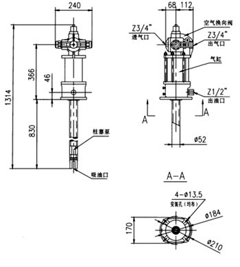 3、使用2#油脂或高稠度潤滑油時,油桶內(nèi)必須配用壓油板(本公司另有供貨)。