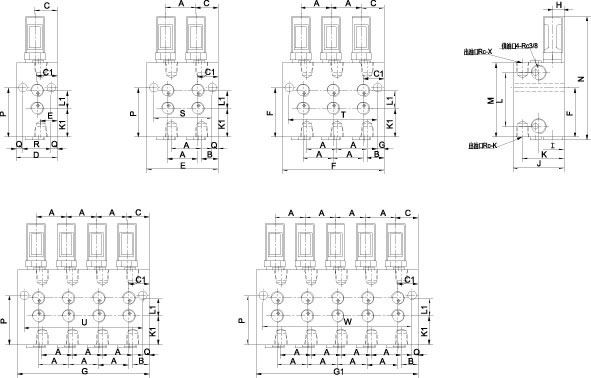 該系列雙線分配器在正面和上、下面均設有出油口,為雙向出油形式,正面上排與上面對應出油口貫通,正面下排與下面對應出油口相貫通,根據(jù)配管方向需要任意選擇,分配器活塞正反向動作分別從上下側(cè)出油口排出潤滑脂一次,為方便增大倍量的給油量,易改奇數(shù)出油,在上下對應的出油口間還設有合二為一的結構,使用時只需擰開下出口內(nèi)的螺釘,不用的出口用R1/4 螺塞封堵即可。KW系列雙線分配器可以從指示桿的動作直接觀察分配器的工作情況,還可以通過調(diào)整螺釘在規(guī)定的范圍內(nèi)方便地調(diào)整各個出油口的給油量。