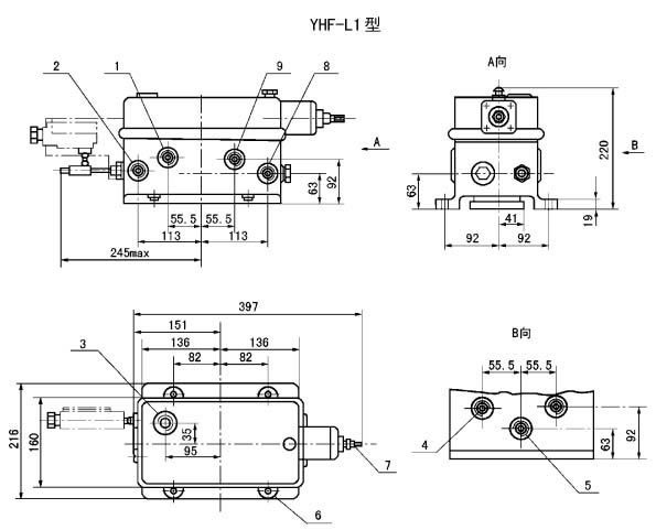 供油主管L1的末端與回油口R1連接,當末端的壓力超過設定壓力,則把先導滑閥推向右側。