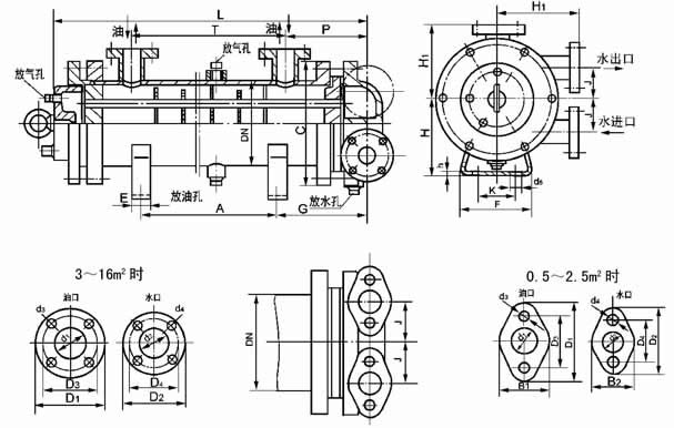 與GLLQ型列管式冷卻器相似,產品適用于冶金、礦山、輕工、電力、化工等工業部門的液壓與潤滑裝置,將熱工作油冷卻到要求的溫度;冷卻器的設計最高溫度為100℃~120℃,工作壓力≤1.6MPa,傳熱系數為348~407w/m2.k,(若采用翅片管換熱,則傳熱系數為523~580W/m2·k,但允許介質粘度為10~50cSt)。下面列出的LQ型冷卻器則規定介質粘度為10~326cSt,主要技術參數如下表: |