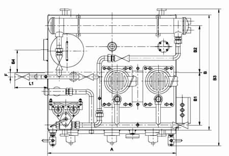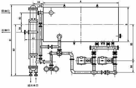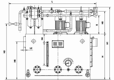 ≥250L/min稀油站,采用蒸汽加熱油箱中的潤滑油,儀表盤尚多一檢測冷卻器進出水管壓差的儀表,其主要部件均另外裝于基礎上;而≤125L/min稀油站的全部部件都裝在油箱上,為整體式結構。 |