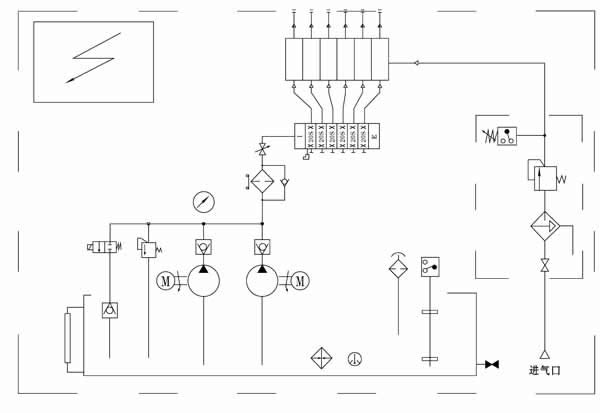 該站主要由油箱(帶電加熱器、液位計、電接點溫度計、空氣濾清器、液位控制器)、兩臺高壓油泵裝置(一備一用)、溢流閥、二位二通電磁閥、過濾器、單向閥、壓力表、KM型遞進式分配器、油氣混合器、壓力控制器及氣動三聯件和PLC電氣控制箱等組成。