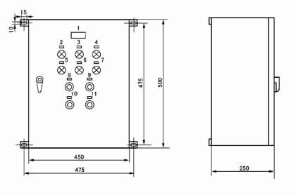 控制箱能發出“供油時間延長”、“加油泵超載”、“超負荷運轉”等故障信號,箱內設有一組外部接點,可向主機或主控室發送系統運轉狀況(停止、運轉、故障)信號。